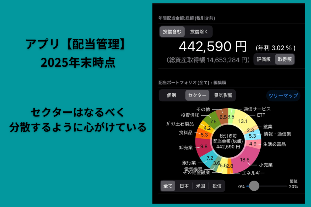 2025年の配当金(分配金)に関してはスマホアプリの「配当管理」で集計しています。